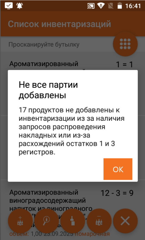 После выбора накладной отсканируйте бутылки, которые нужно вернуть поставщику