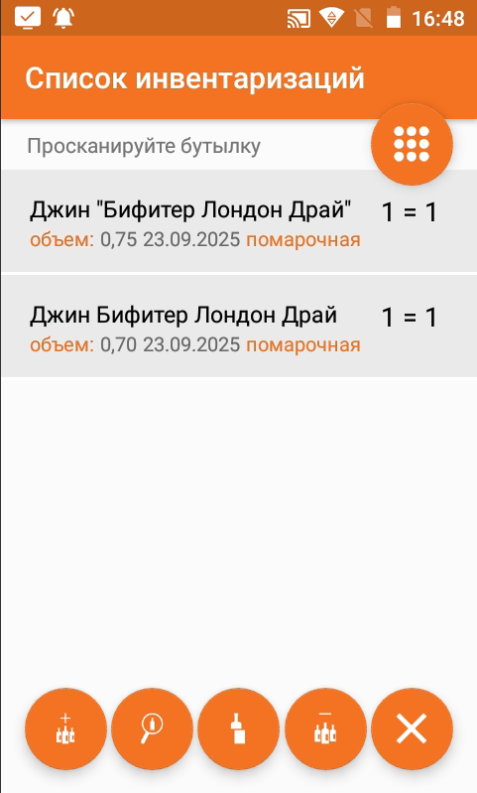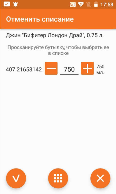 Если в данном режиме отсканировано несколько бутылок с одинаковым наименованием списание будет происходить по ФИФО